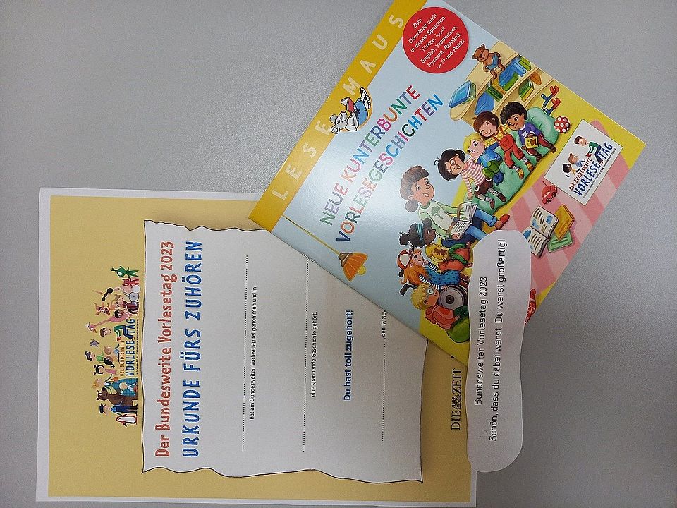 Alle Kitakinder erhielten eine Urkunde als Zuhörer. Jede Familie wurde das Buch „Neue kunterbunte Vorlesegeschichten“ – eine Sonderausgabe von Lesemaus geschenkt.