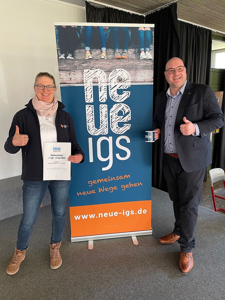 Die Neue IGS Göttingen lud zum Stärkentag ein. Ein Tag, der ganz im Zeichen der individuellen Stärken der Schüler*innen stand. Der DRK-Kreisverband Göttingen-Northeim e.V. entsandte Kathrin Hausmann, die vor Ort auf Marcel Depp (Präsidiumsmitglied) traf. Gemeinsam mit weiteren engagierten Stärkepaten unterstützten sie die Jugendlichen dabei, ihre Fähigkeiten zu erkennen und ihr Selbstbewusstsein zu stärken.