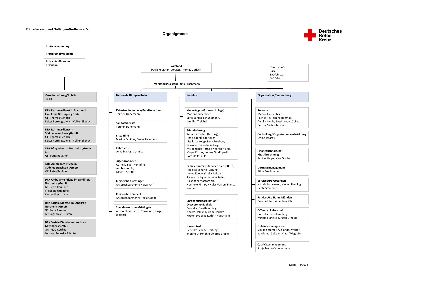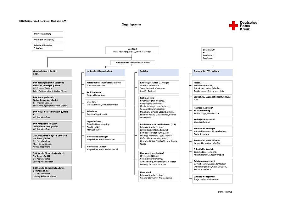 Organisationsstruktur des DRK-Kreisverband Göttingen-Northeim e.V. Für eine größere Ansicht klicken Sie auf das Bild.