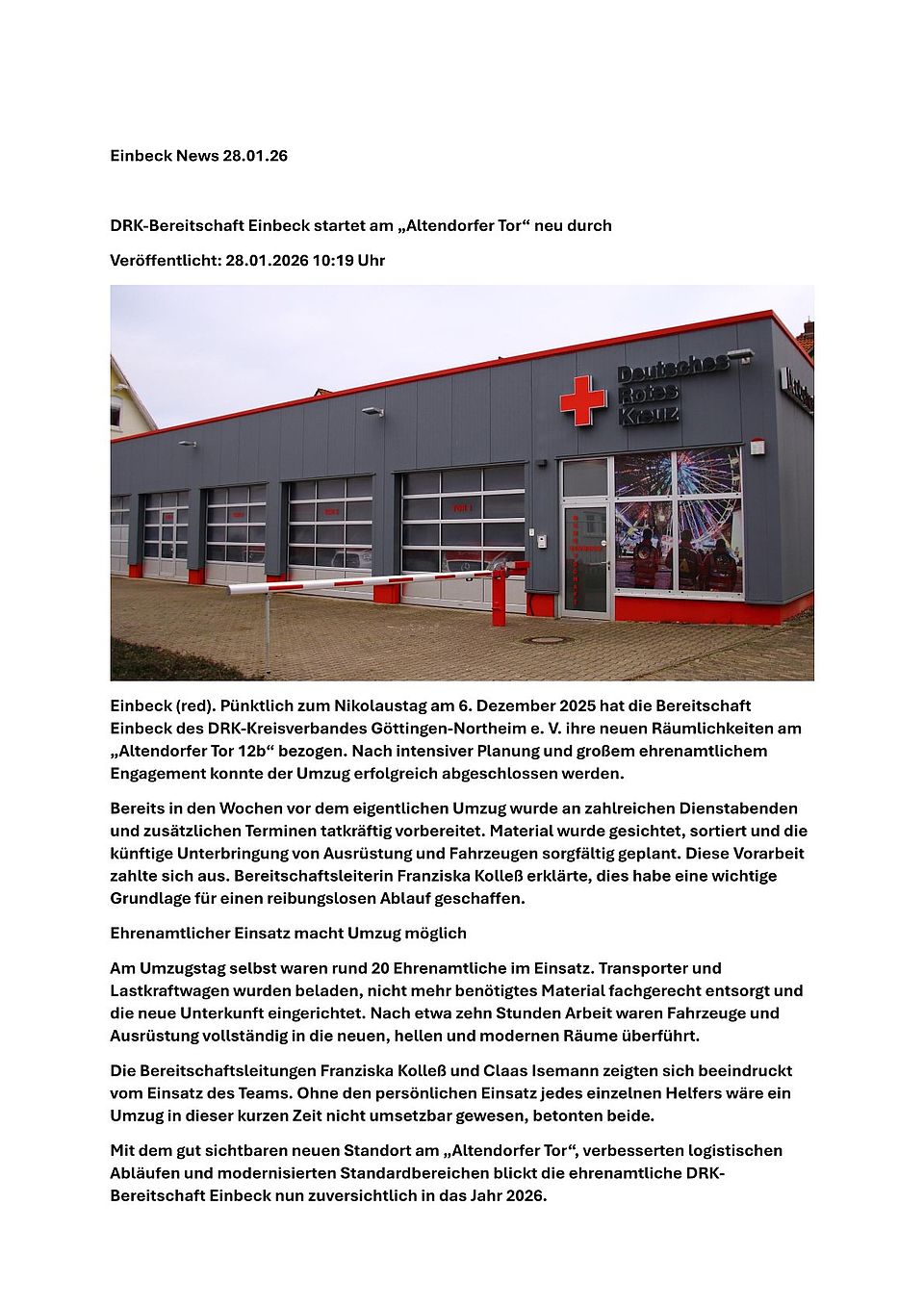 DRK-Bereitschaft Einbeck startet am "Altentorfer Tor" neu durch