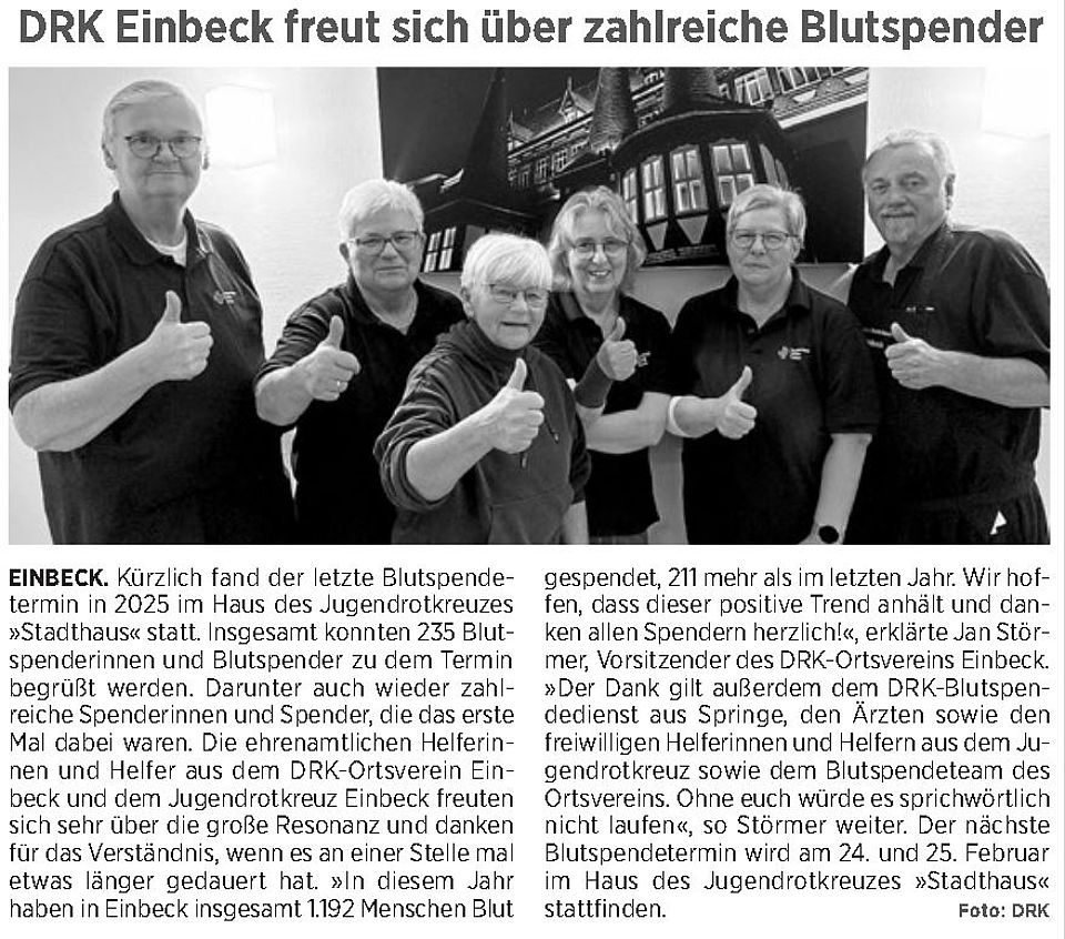 DRK Einbeck freut sich über zahlreiche Blutspender