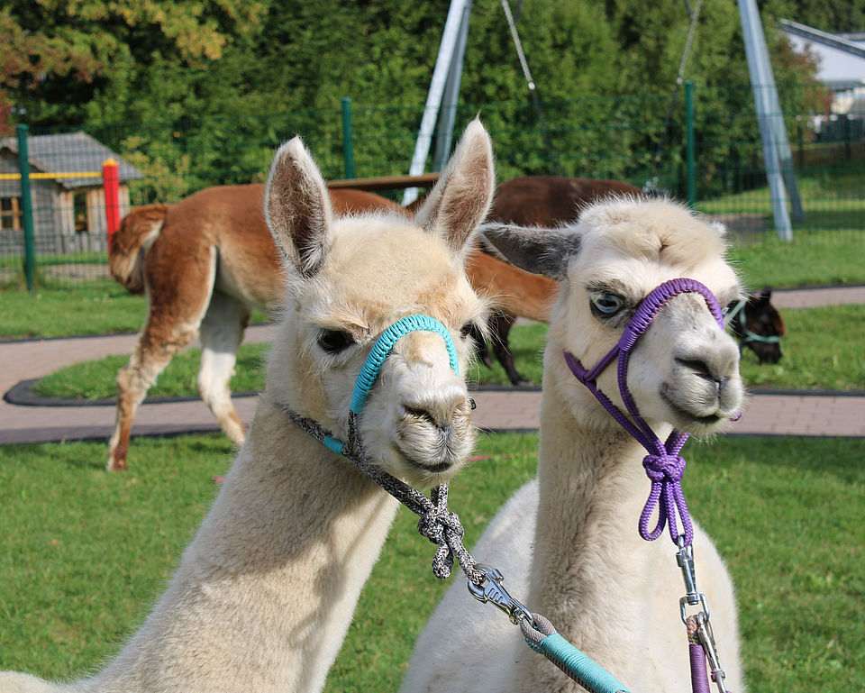 Ein ganz besonderer Besuch sorgte am 22. September 2025 für leuchtende Augen in der DRK-Kordes-Kita Uslar. Sina Wedekind und ihre vier Alpakas Elsa, Jonah, Nala und Daisy waren zu Gast. Im Rahmen eines inklusiven Projektes hatten sich insgesamt 38 Kindergartenkinder im Alter von 3-6 Jahren angemeldet und nun die Gelegenheit, die Tiere hautnah auf dem Kindergartenspielplatz zu erleben.